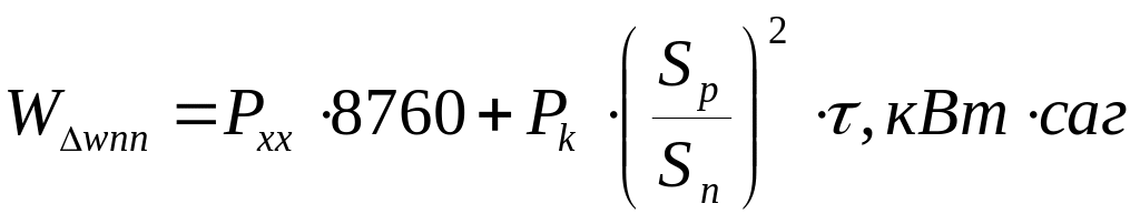 Электр энергияның жылдық шығынын келесідей формуламен есептейміз: