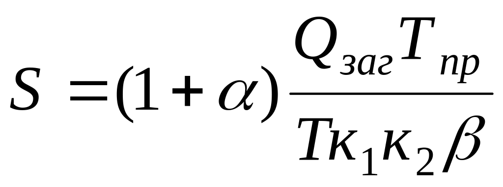 к1 – коэффициент, который учитывает неравномерность поступления материалов на склад (в случае использования железнодорожного транспорта к1 = 0.90...0.95, при использовании автомобилей к1 = 0.65...0.80),