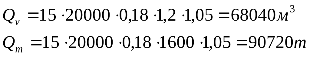 Объем работ по устроению слоев дорожной одежды рассчитываем согласно таким формулам: