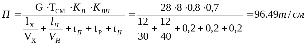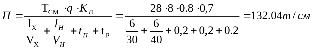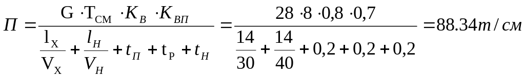где Vзм (Qзм) – количество грузов, перевезенных за смену по видам работ, м3 или т