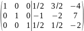 К элементам второй строки прибавляем элементы третьей, умноженные на 4, а к элементам первой строки - элементы третьей, умноженные на 5: