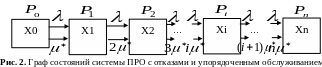 Рассмотрим работу n – канальной системы ПРО с ограниченным временем пребывания заявки в системе. Алгоритм работы системы следующий: если к моменту поступления заявки в систему свободен хотя бы один из n каналов, то эта заявка принимается к обслуживанию только одним из свободных каналов. Если к моменту поступления заявки в систему все каналы заняты, то данная заявка остаётся необслуженной. На занятый канал действует пуассоновский поток освобождений с интенсивностью . Эта интенсивность является суммой интенсивности потока обслуживаний одного канала и интенсивности потока уходов заявки из под обслуживания .