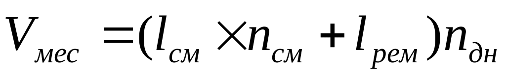 lсм = np lp = 4·0,67 = 2,68 м/зміну.