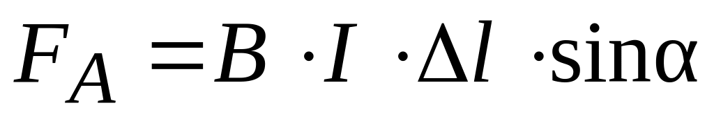 B - магнитная индукция, I-ток в проводнике, l –длина участка проводника, -угол между магнитной индукцией и участком проводника. В одном направлении -притягиваются, в противоположном – отталкиваются.