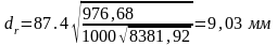 Теперь определим диаметр сопла по формуле: