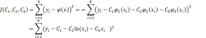 В результате решения исходной системы линейных уравнений и нахождения значений получаем запись искомой аппроксимирующей функции в следующем виде