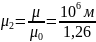 Для магнитных материалов в литературе указывается относительная магнитная проницаемость μ2, а абсолютная магнитная проницаемость рассчитывается по формуле: