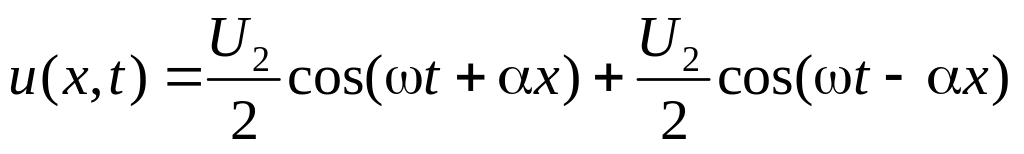 Друга поширюється в напрямку осі х від кінця лінії. Це відбита хвиля. Обидві ці хвилі мають однакові амплітуди. Тому в точці, куди ці хвилі приходять у протифазі, маємо нульовий вузол, а де вони синфазні — пучність.