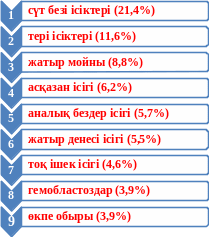 Әйелдер арасында обырдың таралушылығы бойынша: