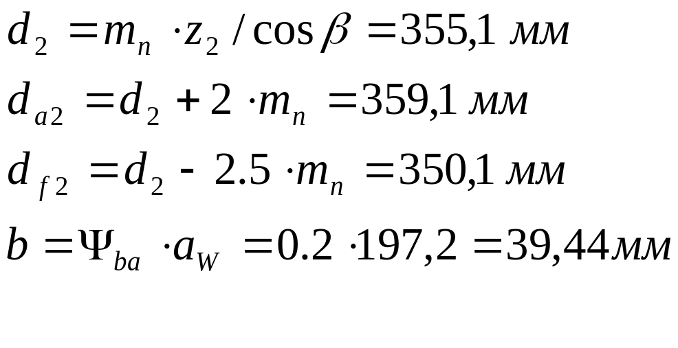Табл. 2.2.3. Геометрический расчет цилиндрической зубчатой передачи