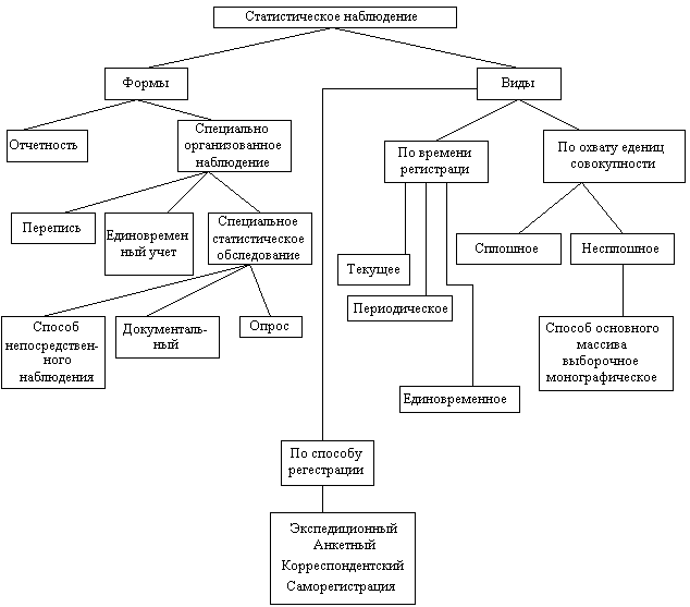 Рис. 2.1. Формы, виды и способы статистического наблюдения