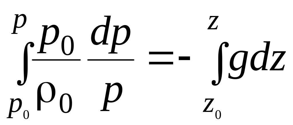 Принимая p = const (dp = 0) в основном уравнении гидростатики (2.21), c учетом того, что для жидкости r ¹ 0, получим: