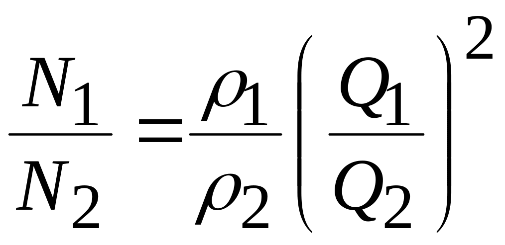 Часткові рівняння подібності для перерахунку індивідуальної характеристики турбіни при зміні тільки витрати і густини рідини мають такий вигляд: