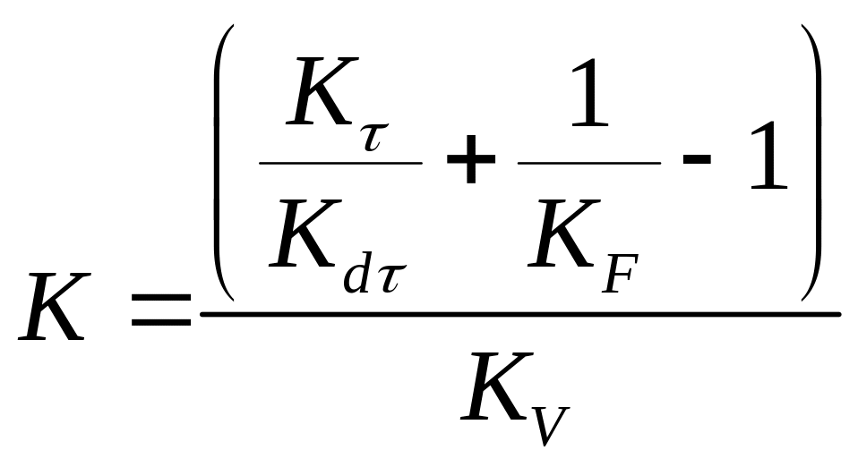 Суммарные коэффициенты концентрации напряжений при изгибе и кручении: