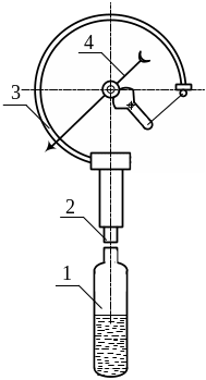 Р и с. 3. Схема манометрического термометра 1 – термобаллон; 2 – капиллярная трубка; 3 – пружина; 4 – стрелка манометра |