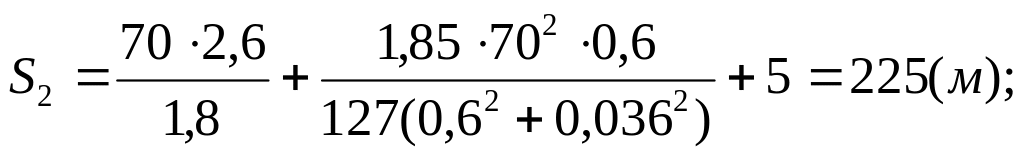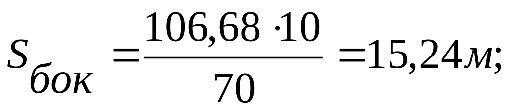 где, v — скорость движения автомобиля, принимается равной расчетной для дороги данной технической категории,(70) км/ч;