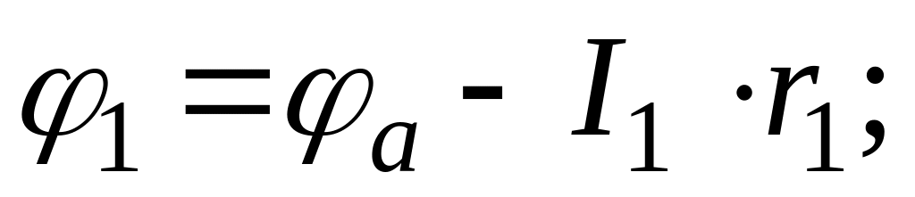 Тогда потенциалы обозначенных в схеме точек при известных токах определятся следующим образом: