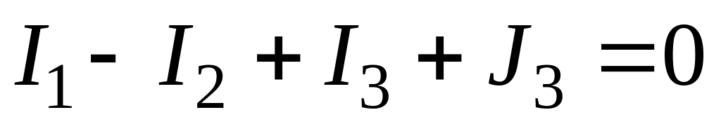 3. Определить количество уравнений по первому закону Кирхгофа, которое равно количеству узлов без единицы (y – 1). Записать для произвольно выбранных узлов требуемое количество уравнения по законам Кирхгофа. В алгебраической сумме следует учесть и токи источников тока.