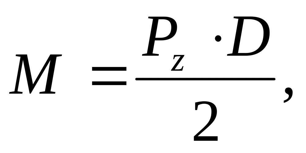 Составляющую Рz называют главной, т.к она действует по направлению вектора скорости главного движения и имеет наибольшее значение при лезвийной обработке, она определяет основную работу резания. По силе резания PZ производят расчет крутящего момента М (Н·м), который нужно приложить к шпинделю станка (момент сопротивления резанию М):