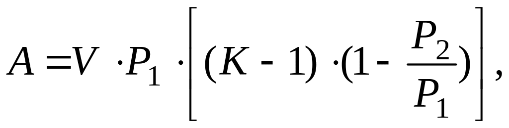 где V – объем сосуда, м3; Р1 – начальное давление в сосуде до взрыва, Па; Р2 – конечное давление, Па; К – показатель адиабаты, определяется как отношение: