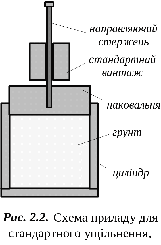 Для визначення оптимальної вологості дисперсних (піщаних і глинистих) грунтів використовують лабораторний прилад для стандартного ущільнення (рис. 2.2).