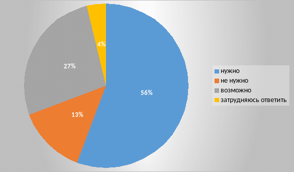 При ответе о включении в программу тура экскурсионных программ, (рис. 3.5.) получены были следующие ответы: 56% считают, что включать экскурсионные программы в программу фестивального тура нужно, 27% считают это возможным, только 13% не считают нужным в программе экскурсии, 4% не определились с ответом.