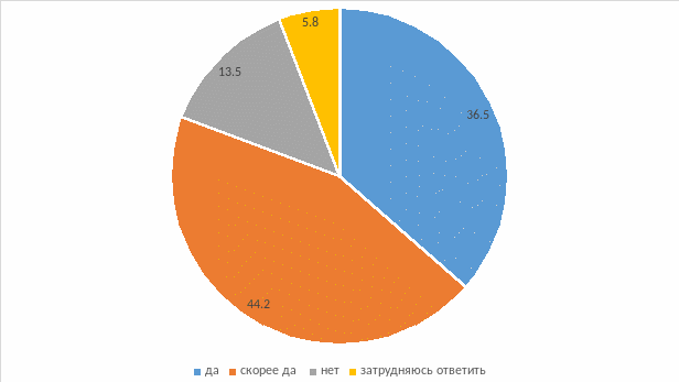 На вопрос: «Хотели бы Вы стать участником фестивального тура в Крыму?» большинство (44,2%) ответили «скорее да», 36,5% ответили утвердительно, 13,5% - отрицательно, и 5,8% затруднились ответить (рис. 3.3.).