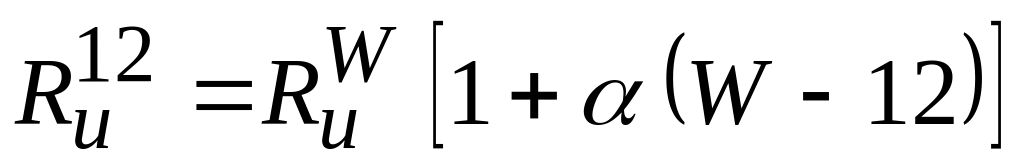 Предел прочности (в МПа) образца с нормализованной влажностью W при необходимости пересчитывают на стандартную влажность 12% по формуле: