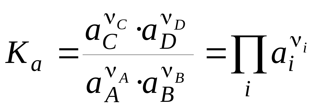 У випадку реальних систем рівноважні концентрації у вираженні (5) заміняють на рівноважні активності (аi) і одержують термодинамічну константу хімічної рівноваги: