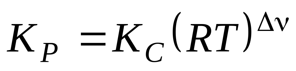 Знайдемо зв'язок між КР і КС для реакцій між ідеальними газами. Виразимо рівноважні парціальні тиски за допомогою рівняння Менделєєва-Клапейрона: