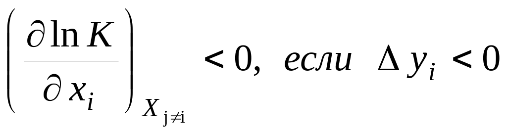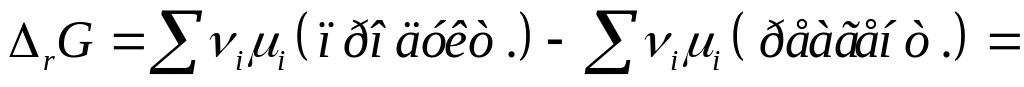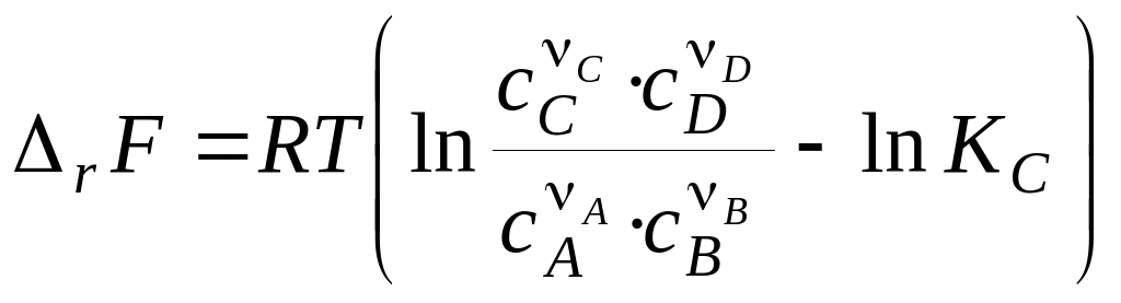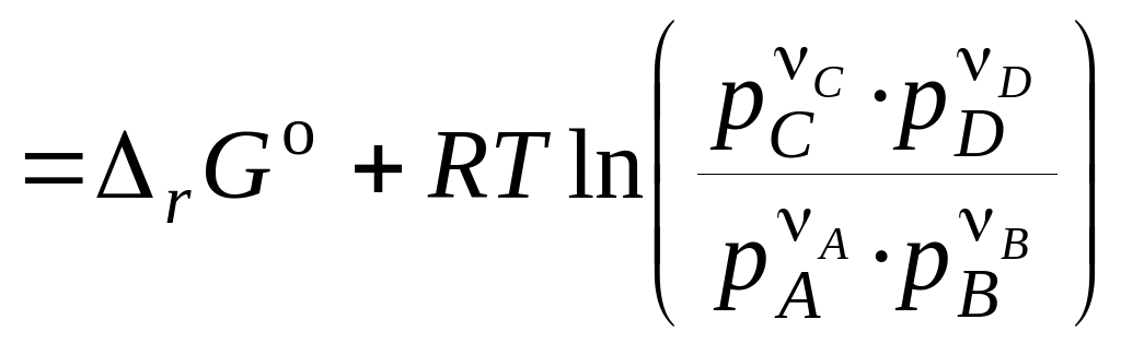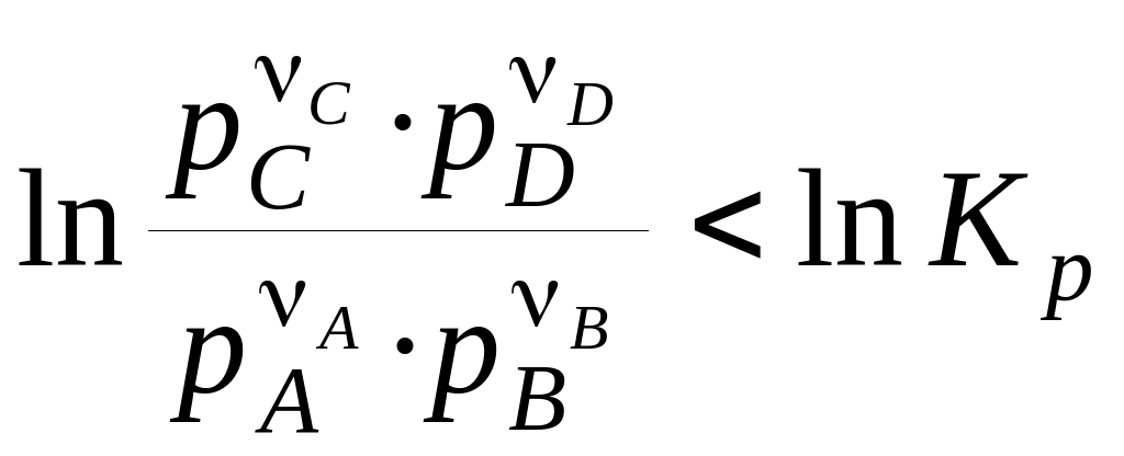 По рівнянню ізотерми хімічної реакції можна розрахувати зміна енергії Гіббса при відповідних умовах, тобто визначити можливість, напрямок і межа протікання мимовільного процесу. Щоб мимовільно здійснювалася пряма реакція, зміна енергії Гіббса (r) повинне бути негативним, а це можливо за умови: