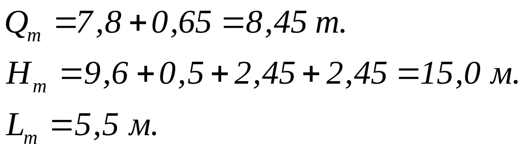 Виходячи з розрахованих потрібних параметрів, за характеристиками, що встановлюються (номограми зміни вантажопідйомності та висоти підйому гака залежно від довжини та вильоту стріли), по довіднику здійснюється вибір кранів, які задовольняють потрібні значення параметрів.