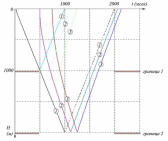 - •Годографы падающих и отраженных волн для различных положений пунктов возбуждения.
