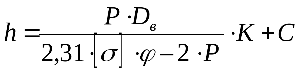 По формуле (4.2) выполняются расчеты толщины стенок жаровой трубы (топки) h1, наружной обечайки (корпуса котла) h2 агрегата и дымогарных труб h3. Полученные расчетные значения округляются до ближайшего большего значения из стандартного ряда листового проката и сортамента труб [4].