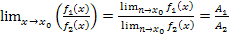 Предел частного двух функций, имеющих пределы при равен частного пределов этих функций,