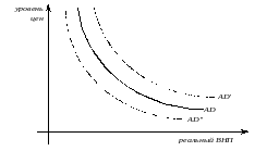 Последствия увеличения AD в AD2 зависят от того, на каком отрезке кривой AS оно происходит. Если на горизонтальном отрезке (т. Е), то рост AD будет воздействовать на производство.