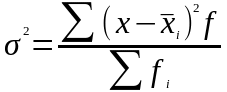 Если же данные сгруппированы, то используется формулы средних взвешенных, где весами выступают частоты f (повторяемость варианты).
