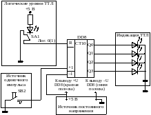 - на вход «–1» микросхемы DD8 подайте сигнал с гнезда +5 В на поле «Источник постоянного напряжения»;