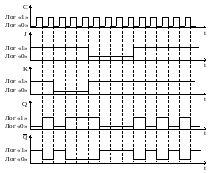 Рис. 7.18. Временные диаграммы работы JK-триггера при воздействии на входы J и K