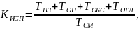 1. Коэффициент использования рабочего времени, который рассчитывается по формуле: