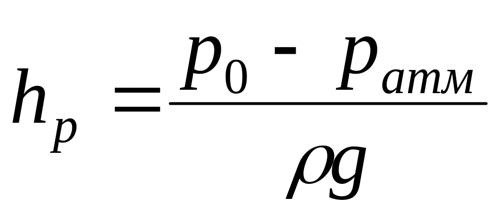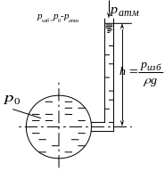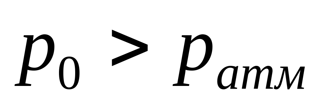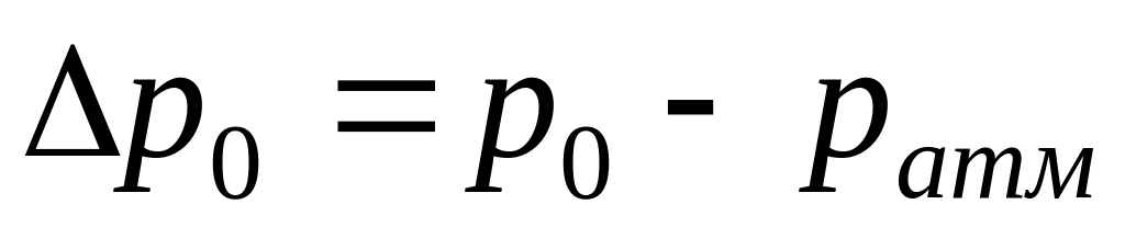 Если на поверхности жидкости давление больше атмосферного, то избыточное давление в рассматриваемом случае будет равно: