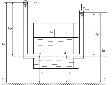 Рисунок 13 – К понятиям гидростатического и пьезометрического напоров