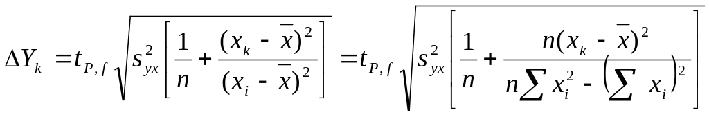 Доверительный интервал вычисляемых значений зависимой переменной Yk. Полученную функцию у = a + bx используют для расчета Yk и Yk для одного заданного значения xk. Доверительный интервал для вычисленного значения Yk рассчитывают по формуле: