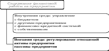 Финансовую работу можно рассматривать как совокупность взаимоотношений предприятия с внешней и внутренней средой (рисунок 1.2) [24, с. 406].