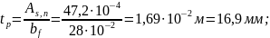 Розмір виступаючої вниз частини опорного ребра приймаємо рівним 20 мм. Потрібна площа перерізу опорного ребра з умови зминання торця така: