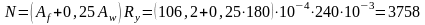 Переріз стінки ослаблений 28 отворами. Значення площ становлять: