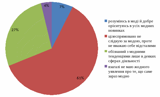 - •Обізнаність респондентів щодо модних тенденцій та новинок