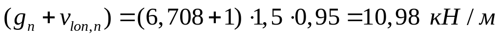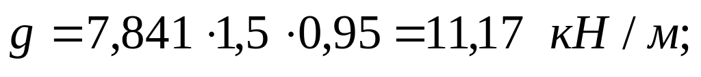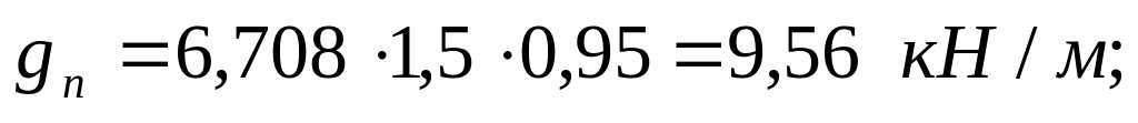 Нагрузка на 1 п.м. плиты при номинальной её ширине плиты 1,5 м с учетом коэффициента надежности по назначению здания (II класс ответственности) n=0,95:
