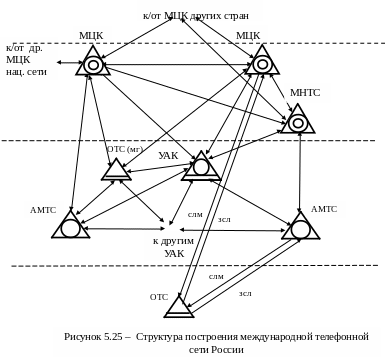 Схема построения международной телефонной сети России представлена на рисунке 5.25.