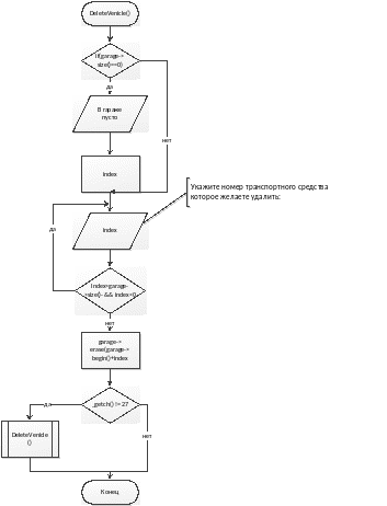 Выводы: в результате выполнения этапа описания были пошагово разобраны и проанализированы все алгоритмы функций главной программы, а именно алгоритмы функций добавления и удаления транспортного средства, а так же вывод транспортного средства на экран отвечающего определенной характеристике.